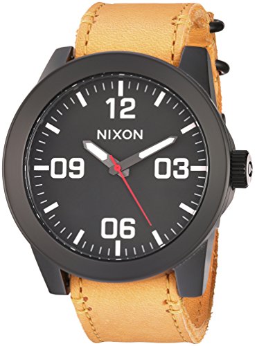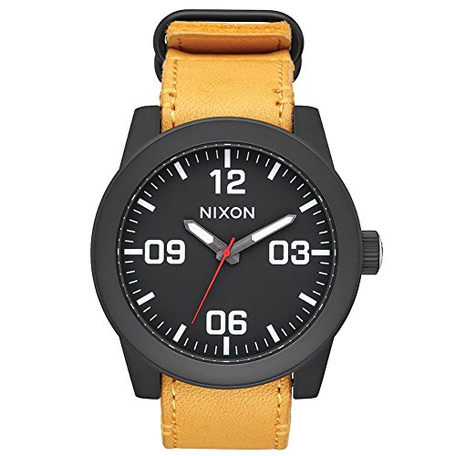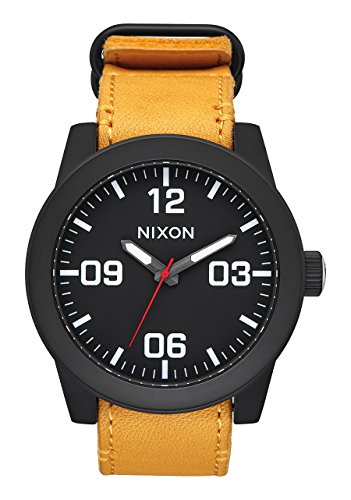 Nixon Men's 'Corporal' Quartz Metal and Leather Automatic Watch, Color:Orange (Model: A2432448-00)
