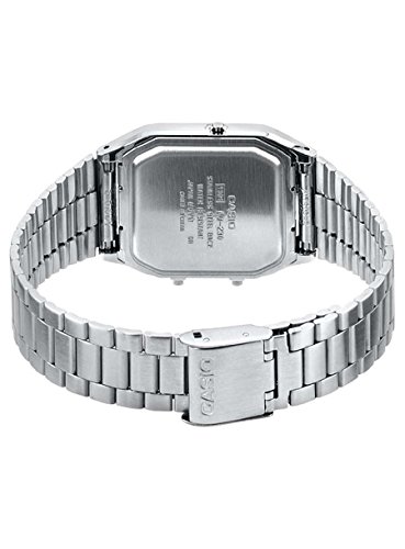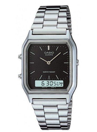 카시오의「클래식」 문자판은 블랙,벨트는 실버의 스테인레스를 사용.아날로그 부하의 디지탈부에는 알람 기능,스톱워치 기능,캘린더 기능(날짜 요일)를 탑재.일상생활 방수 기능 첨부.