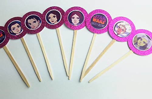 8 Pink Forces of Destiny Star Wars Girls Cupcake Toppers for Birthday Party Favor Goody Star Wars Rogue one Last Jedi Princess Leia Rey