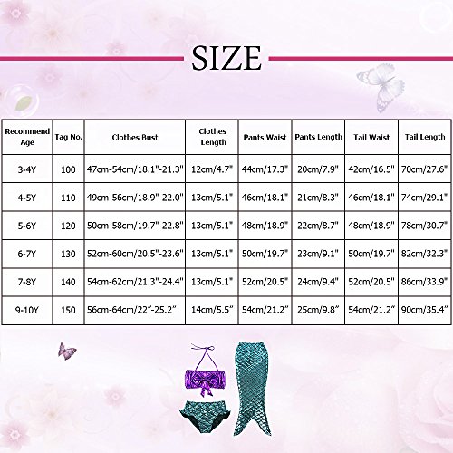 BAOHULU Girls ' 3-piece Swim Set,Lovely Mermaid Tail Bikini Swimsuit Costumes 100-150
