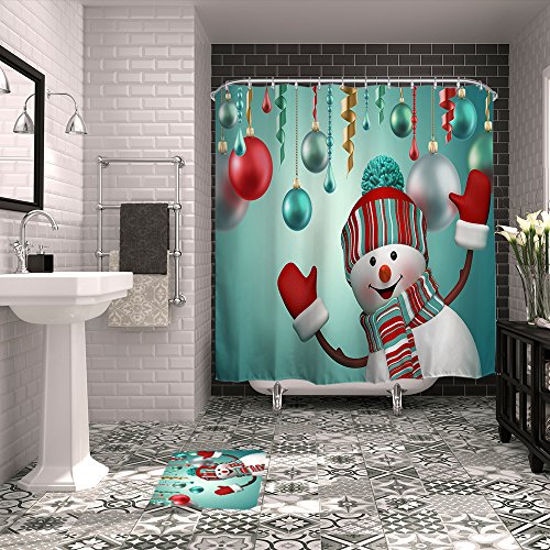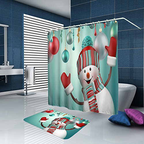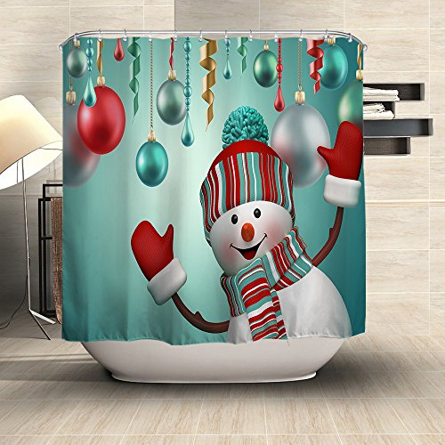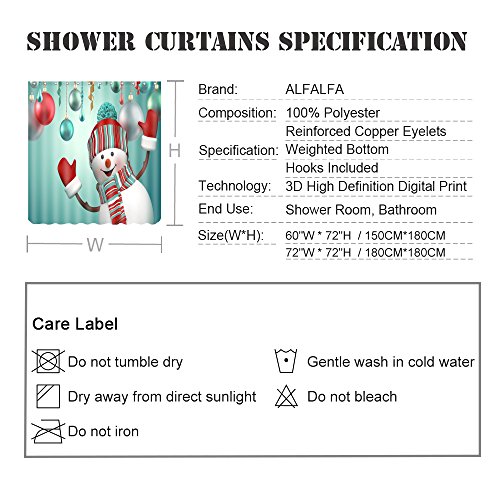 ALFALFA Merry Christmas Home Decor Polyester Fabric Bathroom Shower Curtain 60"W x 72"H (150CM x 180CM) - Happy Snowman