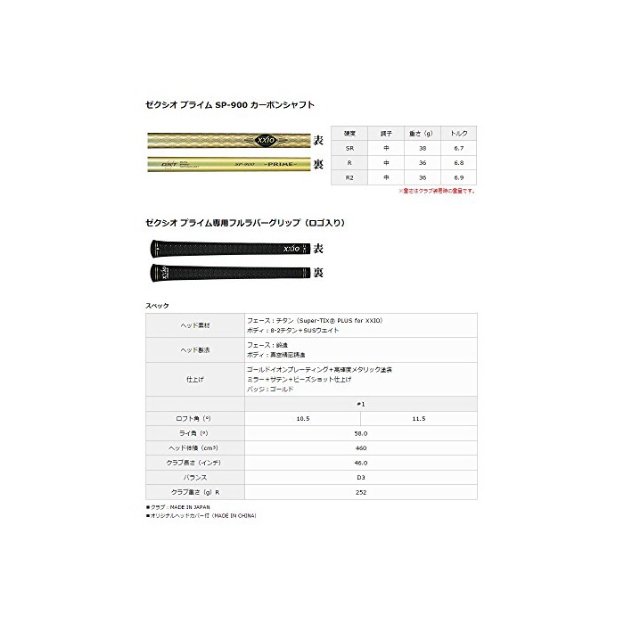 원본상품명: DUNLOP(ダンロップ) ドライバ? XXIO PRIME ドライバ? ゼクシオプライム SP-900 カ?ボンシャフト ロフト角:10.5度 番手:1W フレックス:SR