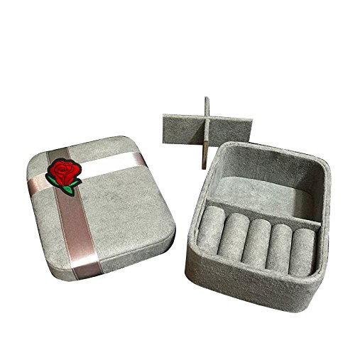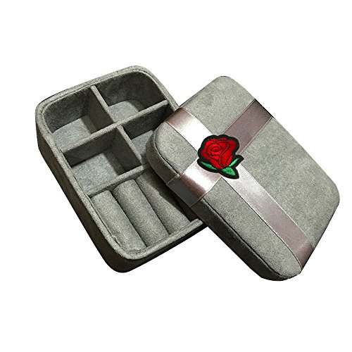 Beautiful Embroidery Design Environmentally Friendly Small Portable Jewelry Box for Student (Red Rose)