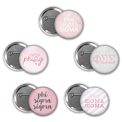 Binding : Apparel Product Description Our fun filled Phi Sigma Sigma sorority buttons set of 5 include all the must have, sorority sugar for your life. Made with lots of love, these 1-3/4inch round buttons are made with mylar shells and pinned backs! Show your sorority pride by pinning these on your back pack, tote or other pencil bags. Use them for sorority swag, new member gifts, or even for recruitment name tags! These Alpha Chi buttons make a perfect addition to any bid day bag or gift basket for your little. Note: Due to color variations on monitors actual product colors may vary slightly. 0