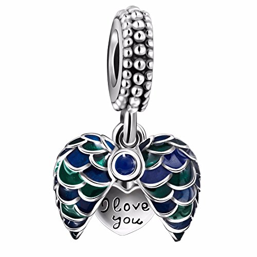 -. Title : 925 Sterling Silver AAA CZ Blue Enamel Angel Wings Open Heart Dangle Charm Bead for European Snake Bracelets