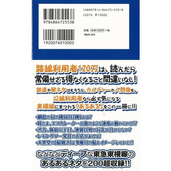 【商品説明】 定価(税込み):1,080円 値引き:10% OFF 中目黒はナカメ、武蔵小杉はコスギと呼ぶ!! 東急東横線に乗るのが、楽しくなる207ネタが発車オーライ! 路線利用者120万は、読んだら常備せざる得なくなること間違いなし! 鉄道や駅ネタはもちろん、カルチャーや人間像も。沿線利用者なら必ず気になる東横線にまつわる「あるある」をこの一冊に!! バーゲンブック 新品 特価 格安 趣味 鉄道 カルチャー | |