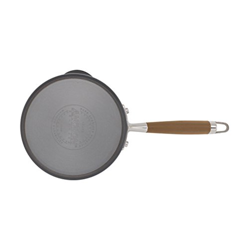 Functional and stylish, the elegant Anolon Advanced Bronze Hard-Anodized Nonstick 2-Quart Covered Straining Saucepan with Pour Spouts lets home chefs quickly strain liquids from locally sourced foods and more without reaching for a colander. A break-resistant glass lid features an extra-deep rim with convenient straining holes; aligned with the convenient pour spout, the lid makes it easy to strain out water after parboiling garden-fresh string beans and more. Heavy-duty hard-anodized construction promotes even and efficient heating with each use and the sleek and modern bronze nonstick exterior adds a timeless touch of style to any kitchen decor. The interior features long lasting restaurant-quality DuPont Autograph 2 nonstick that is metal utensil safe, PFOA-free and easy to clean. The color-coordinated Anolon SureGrip handle is dual riveted for extra strength and designed for a comfortable grasp. Oven safe to 400, the straining saucepan it's the perfect complement to the other pieces in the Anolon Advanced collections.Feature