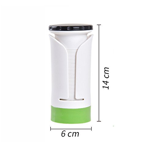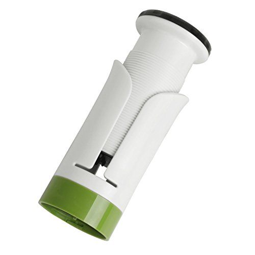 - Easy TO Use -- It fits in your hand, safe design protects hands and fingers from blades. If produce becomes too small to hold, use the included grip cap to keep slicing hands clenched and squeeze inward to fit the screw thread.