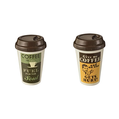 - Set of 2 adorable ceramic mini Coffee Travel Mug SALT & PEPPER Shakers