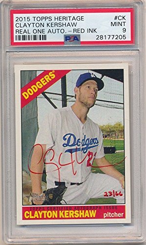 CLAYTON KERSHAW 2015 TOPPS HERITAGE REAL ONE RED INK AUTOGRAPH SP AUTO /66 PSA 9