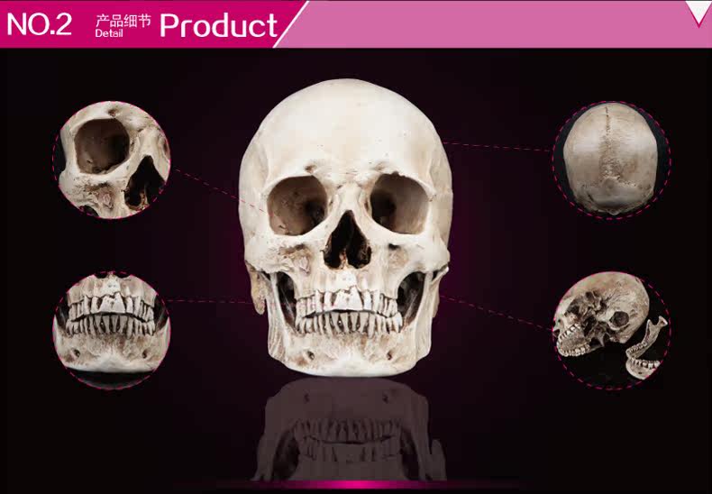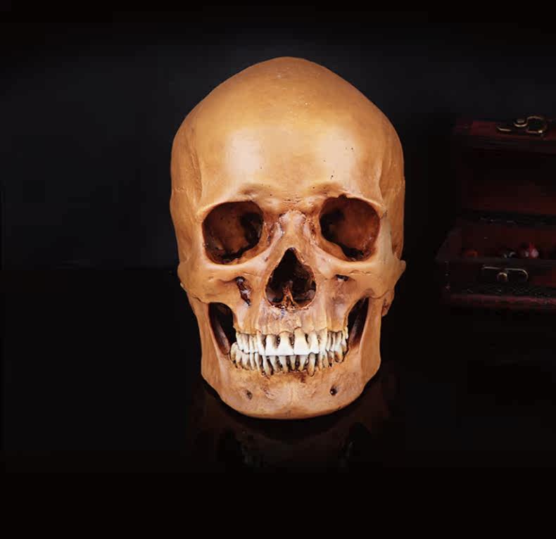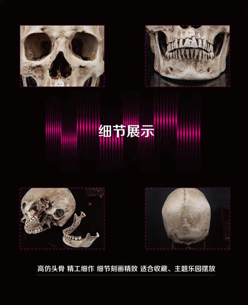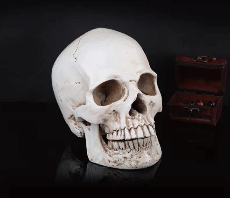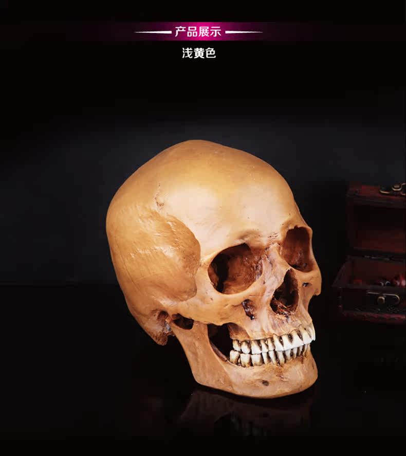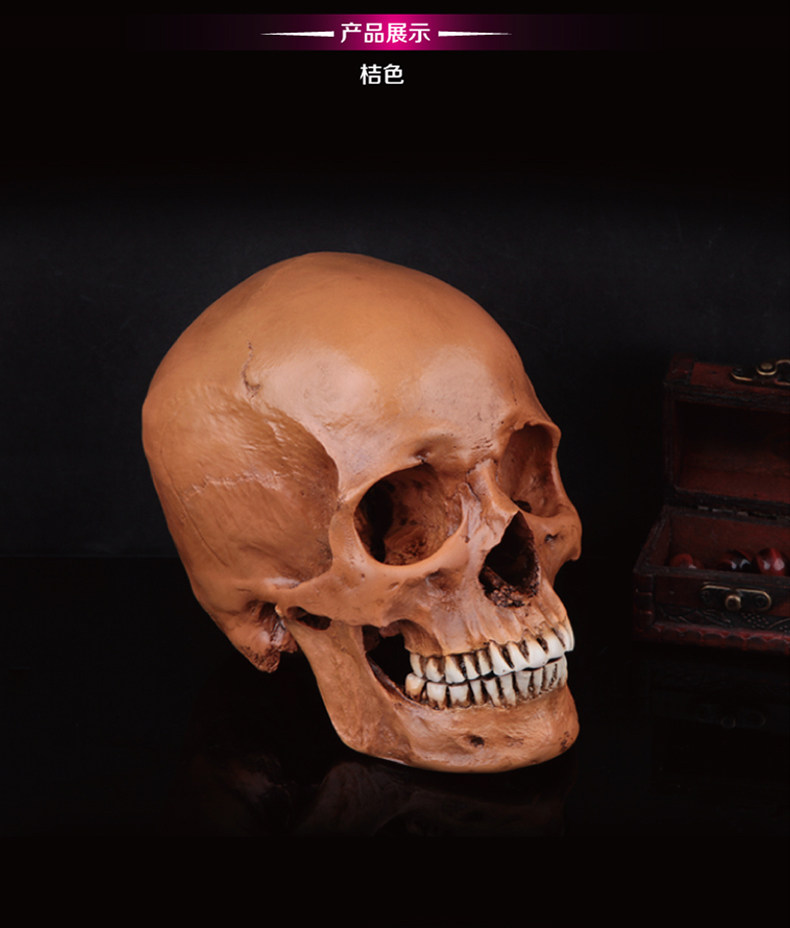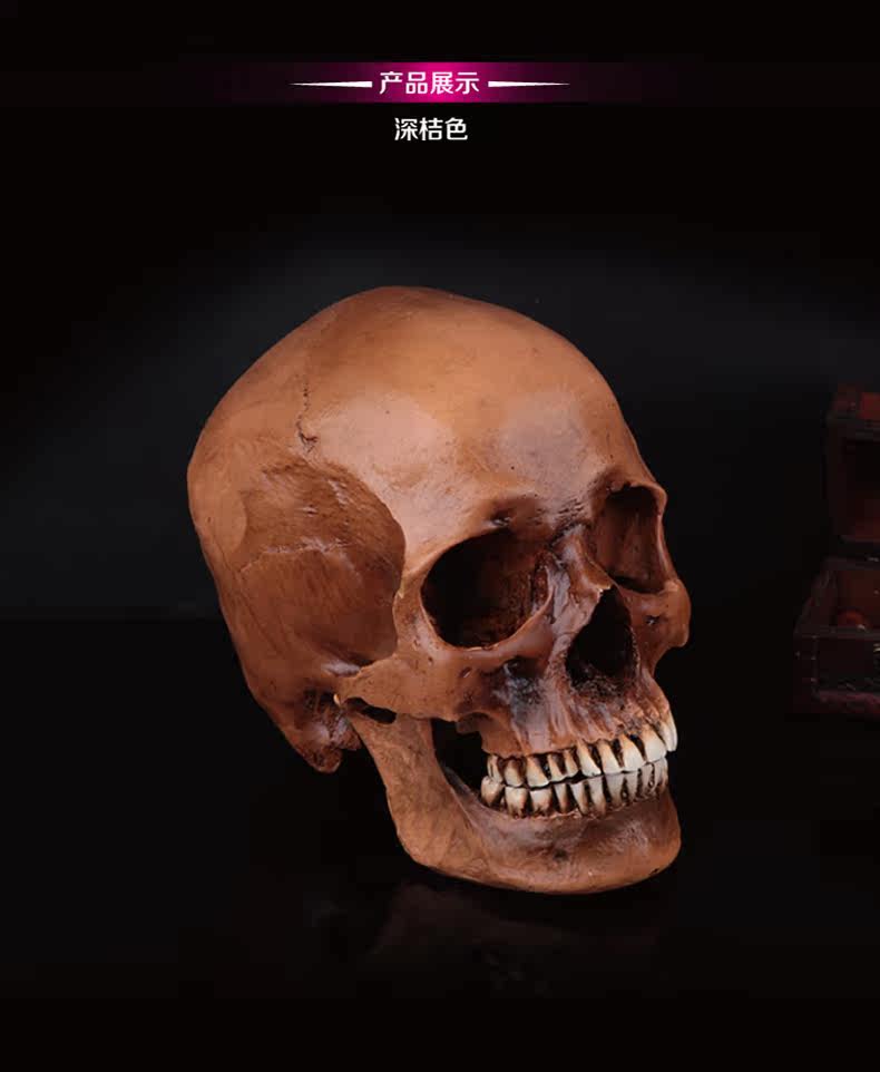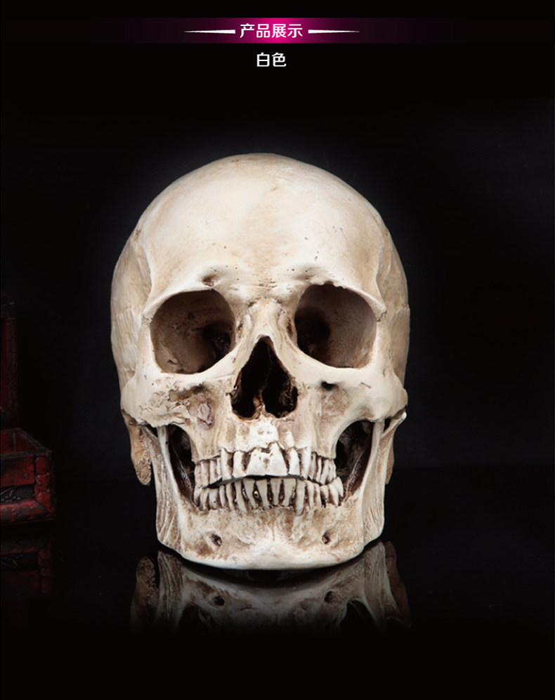 千奇坊万圣节珍藏版高仿真1:1人类头骨模型 医学头骨 树脂骷髅头