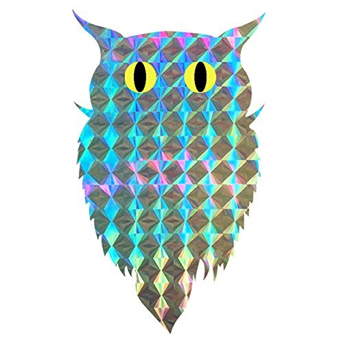 -. Feature : 4"x2.3inch self-adhesive Owl Holographic sticker creates bright flashes of light scaring birds and pests-100PCS per Roll / Diamond pattern emits reflections alerting birds of danger in the area / Predator Guard Scare Tape frightens birds and other daytime predators and keeps them far away from your gardens, crops, property, boats & docks, vehicles. / Humane,Eco - Friendly - Scare Tape is proven to help wildlife and pest bird populations by causing them to migrate to more natural habitat areas where they are free from harm. / QTY:100pcs/roll