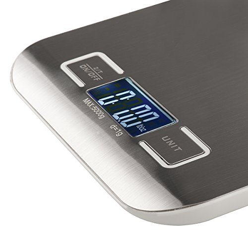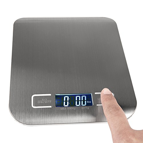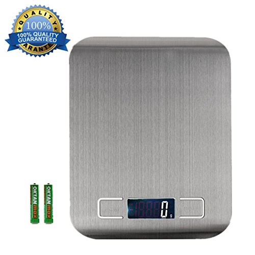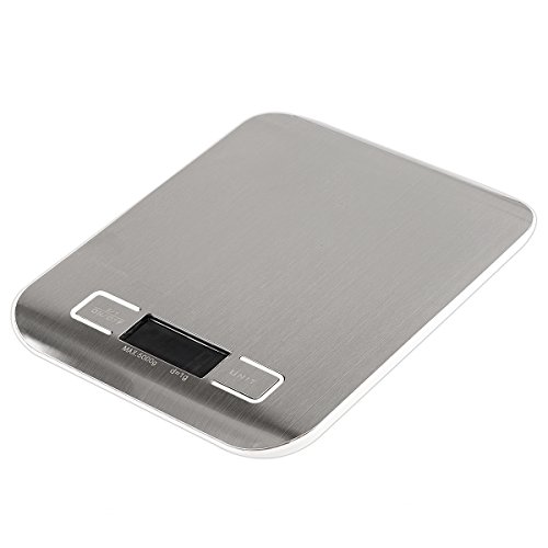 QUN FENG Digital Kitchen Scale Multifunction Stainless Steel Food Scale 11lb 5kg,Silver(Batteries Included)