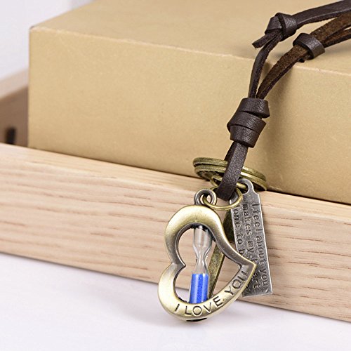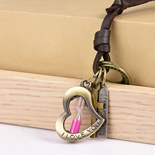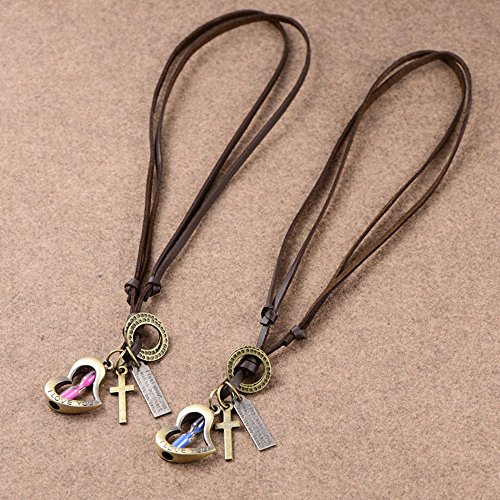 -. Binding : Jewelry -. Brand : Victoria Echo -. Feature : Materia: Genuine Leather,bronze / Perimeter: 19 to 35 inches,Adjustable / hourglass is the symbol of eternal love.With the soft leather,this leather pendant necklace is very comfortable to wear / Best accessory to send it to someone you like / It usually takes about 7-15 days for delivery -. Label : Victoria Echo -. Manufacturer : Victoria Echo -. Model : Ve-tbA1 -. MPN : Ve-tbA1 -. PartNumber : Ve-tbA1 -. ProductGroup : Jewelry -. ProductTypeName : FASHIONNECKLACEBRACELETANKLET -. Publisher : Victoria Echo -. Studio : Victoria Echo -. Title : Victoria Echo Bronze Heart Shaped Hourglass and Cross Pendant Leather Necklace, Love Couple Necklace adjustable