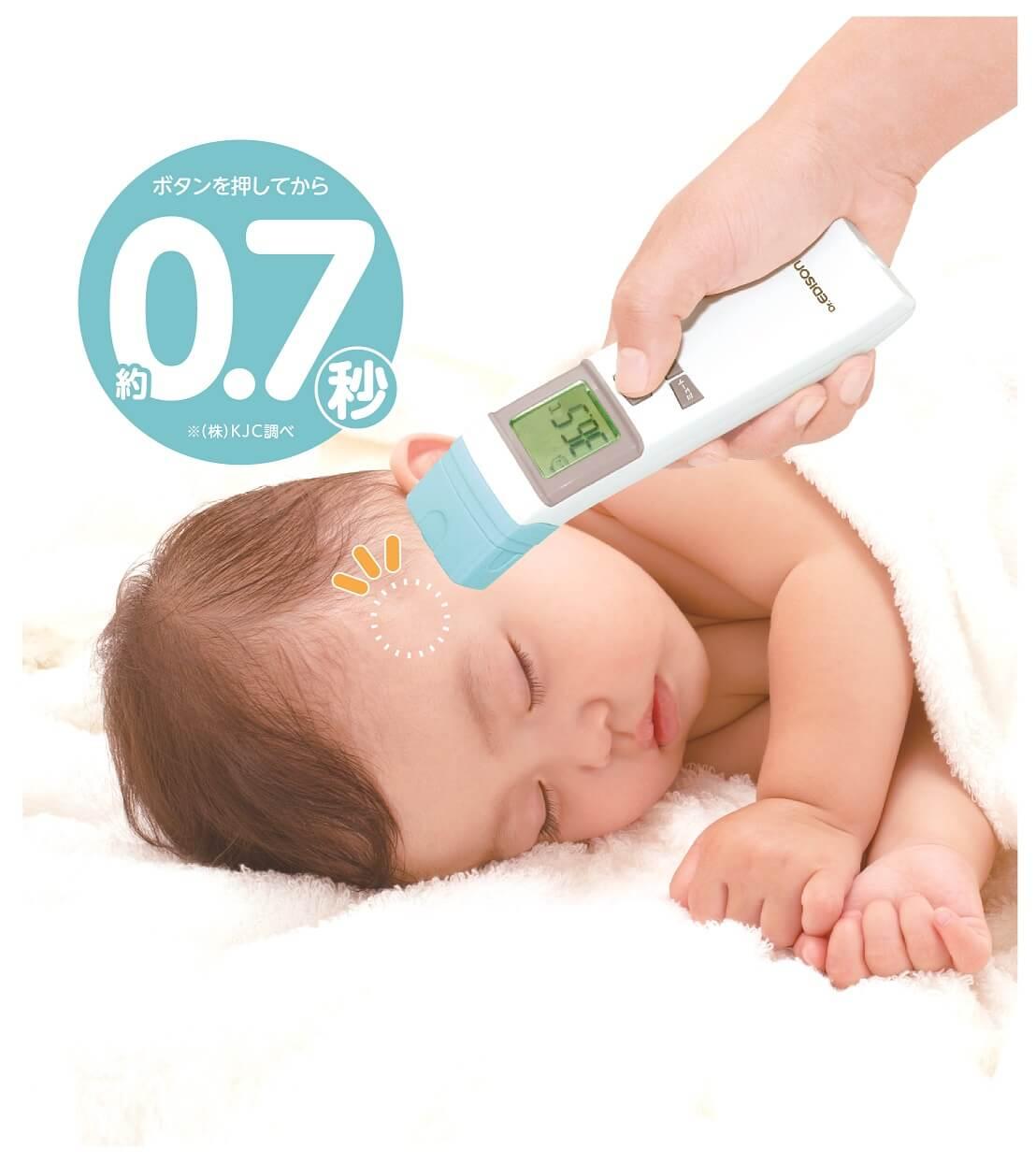 ●ボタンを押すだけで約0.7秒で体温を測定できる「エジソンの体温計Pro」です。