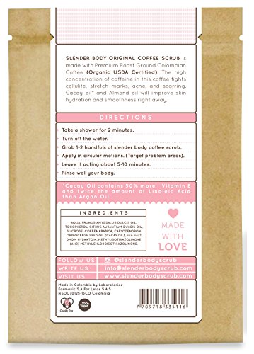 -. Title : Slender Body - Premium Roast Ground Colombian Coffee Scrub (Organic USDA Certified) with Cacay Oil. Target Cellulite, Stretch Marks, Acne and Scarring, 250g (8.8oz)