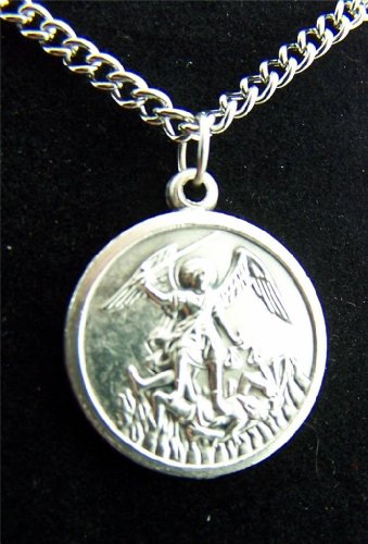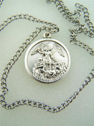 -. Binding : Jewelry -. Brand : Religious Gifts -. Department : unisex-adult -. Feature : Medal - Silver Tone - 7/8 Inch (Dia) / Comes on 24 inch rhodium plated chain -. Label : Religious Gifts -. Manufacturer : Religious Gifts -. MPN : A6G02YC -. PartNumber : A6G02YC -. ProductGroup : Jewelry -. ProductTypeName : FASHIONNECKLACEBRACELETANKLET -. Publisher : Religious Gifts -. Studio : Religious Gifts -. Title : Silver Tone Saint St Michael Protection Charm Pendant Necklace, 7/8 Inch