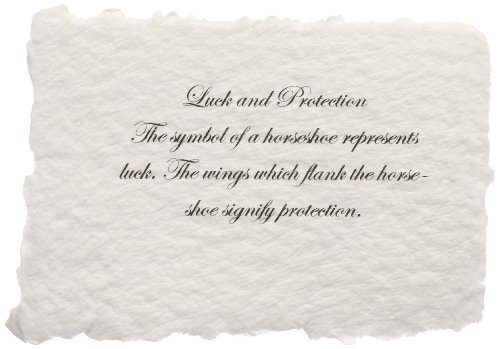The symbol of a horseshoe represents luck. The wings which flank the horseshoe signify protection.