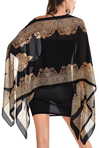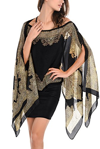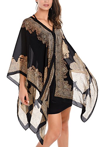 DJT Womens Paisley Print Chiffon Beachwear Poncho Bikini Cover Up Top