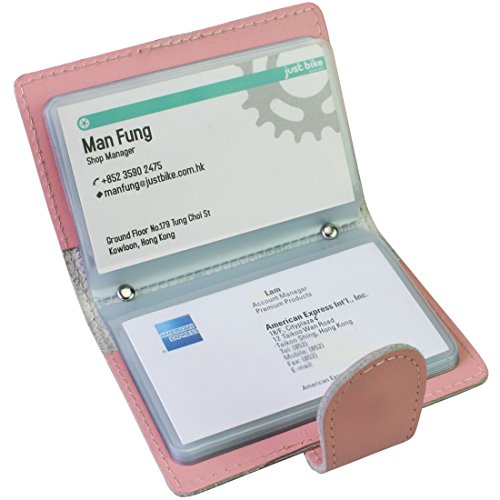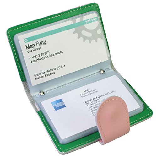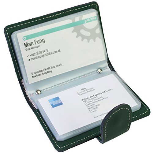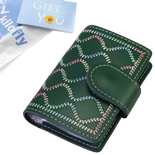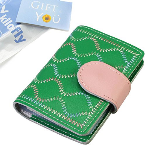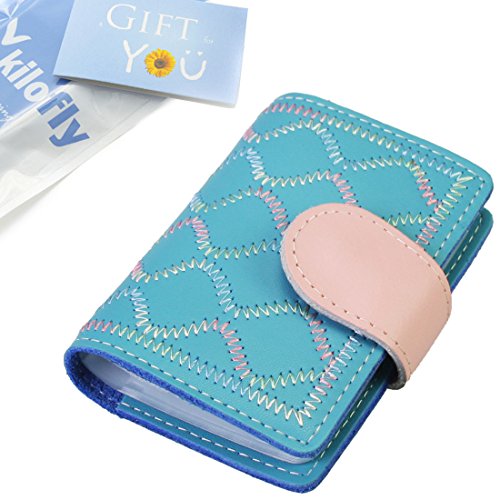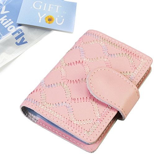- Feature : Made of soft, durable leather / Book style with metal snap button closure / 26 see-through card pockets - Provides ample room to store your credit cards, business cards, and more / Can store 20 credit cards or 52 business cards of standard size and thickness / Size: 10.5 x 7.5 x 2.0 cm / 4.2 x 3.0 x 0.8 inch (L x W x H); AND comes with a kilofly mini Gift-for-You Card - Ideal for dropping a few words for that special someone