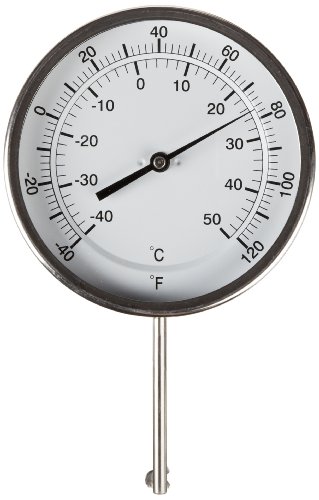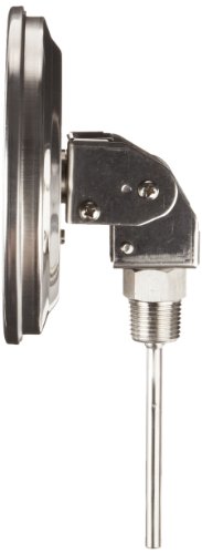 PIC Gauge B5A4-AA Stainless Steel Bimetal Thermometer with Adjustable Angle, 5" Dial Size, 4" Stem Length, -40/120° F and -40/120° C Temperature Range
