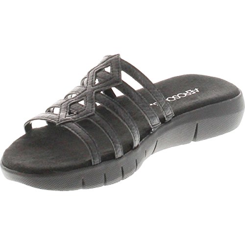 Product Description A chic, new take on the favorite gladiator sandal. Strappy and geometrical, summer wip whips your casual looks into something special. 1” heel on our popular scored sole, and a memory foam footbed ? all designed to keep you feeling your best. 0