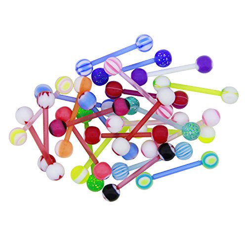CrazyPiercing LOT 100 Pcs 14G Multi Color Assortment FLEXIBLE Tongue Rings Barbells MIX Piercing
