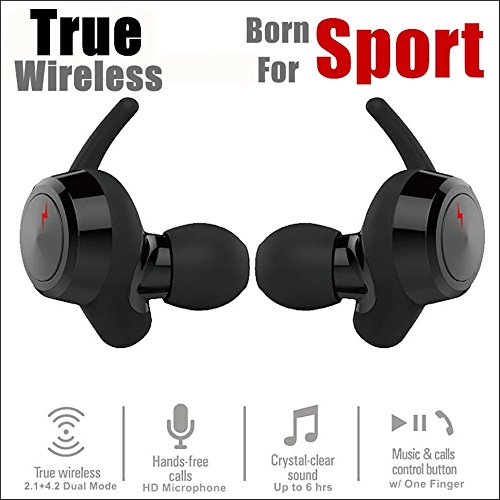 -. Title : True Wireless Sport Earbuds Stereo Dual Bluetooth 4.1 Cordless Earphones Headset Headphones By TWS HD Mic Hands-Free For Running Work Out iPhone Samsung Android Replaceable Comfort Silicone Ear Caps