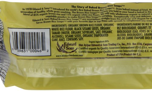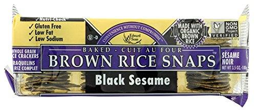 -. Binding : Grocery -. Brand : Edward & Sons -. EAN : 0039631200466 -. Feature : Case of twelve, 3.5 Ounce pack (total 42 ounces/case) / Low Sodium; Low Fat / Product of USA / Brown Rice Snaps, Black Sesame with Organic Brown Rice are Non-GMO Project Verified. -. Label : Edward & Sons -. Manufacturer : Edward & Sons -. MPN : KM46 -. NumberOfItems : 12 -. PackageQuantity : 12 -. PartNumber : KM46 -. ProductGroup : Grocery -. ProductTypeName : GROCERY -. Publisher : Edward & Sons -. ReleaseDate : 2006-03-15 -. Size : 3.5 OZ -. Studio : Edward & Sons -. Title : Brown Rice Snaps, Black Sesame with Organic Brown Rice, 3.5-Ounce Packs (Pack of 12) -. UPC : 039631000462