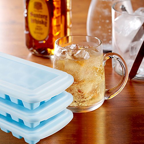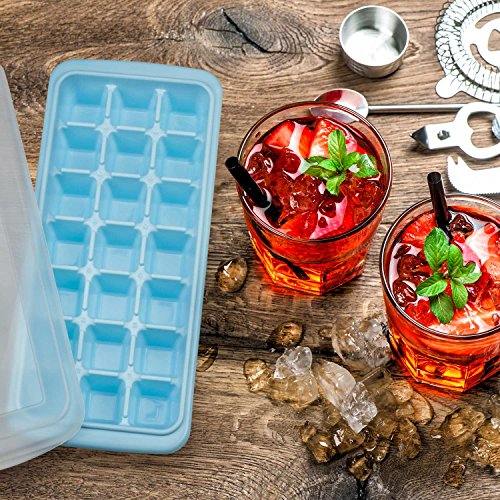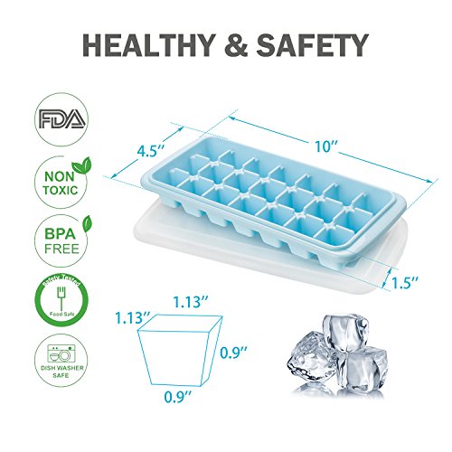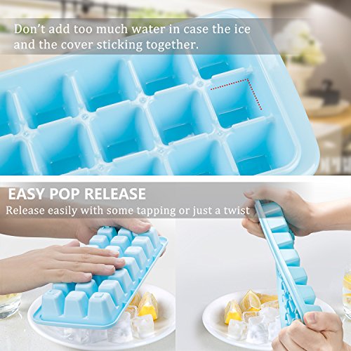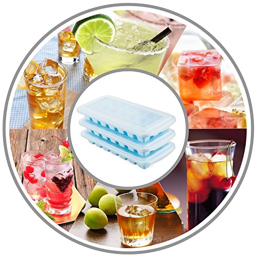 Smopet Easy Release Ice Cube Tray with Removable Cover, Durable Ice Cubes Molds for Whiskey and Cocktails, Keep Drinks Chilled, BPA Free, Odor Free Stackable Ice Trays (3 Pack - Blue)