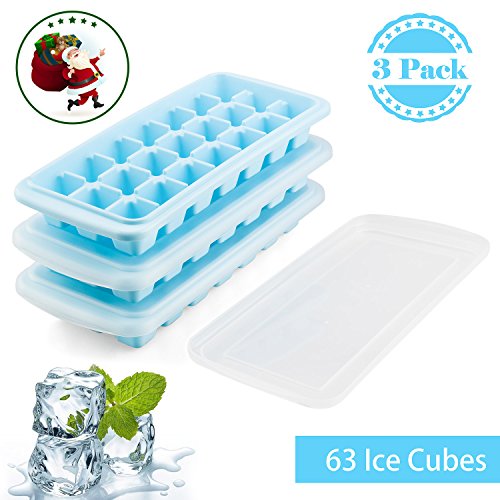 - ✔ Many cubes - Includes 3 trays, each tray makes 21 nice-sized ice cubes and the cubes are perfectly sized for small Beverage glasses.