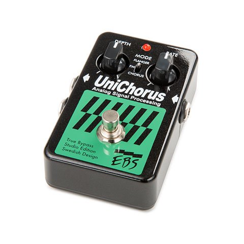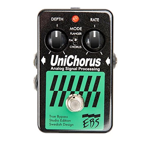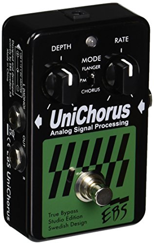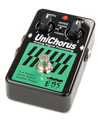 Studio : EBS Publisher : EBS Binding : Electronics Product Description The pedal is built with the best analog processing circuitry available. This gives a smoother, warmer and fatter sounding chorus/flange effect, useful both for live and studio performances. The pedal output can run in mono or stereo. Under the hood of the UniChorus, there's a mix level control that let you decide how much or little of the effect you'd like to be blended with the original tone. See the manual for details. The UniChorus was first introduced in 1997. From the 2008 edition improvements added 3 dB higher headroom, higher sensitivity (makes it easier to dial-in) and new analog circuitry with higher dynamics and lower noise, as well as true bypass switching technique. 2015 marks the introduction of the new Studio Edition featuring optimized signal path, new design, new signal relay switching technique, protection against over voltage up to 18V and the possibility to power the pedal with anything between 9-12V DC. 0