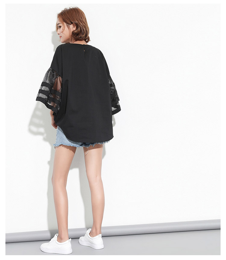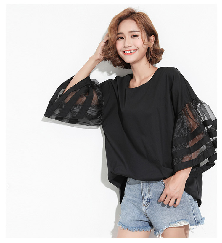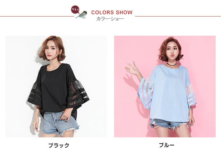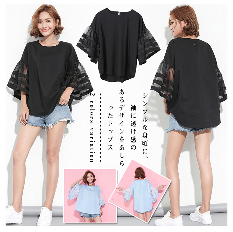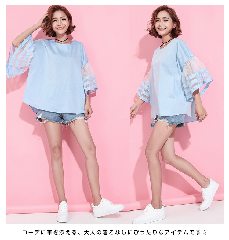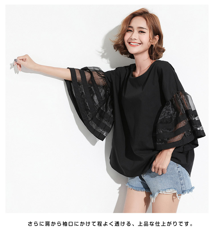 | シンプルな身頃に、袖に透け感のあるデザインをあしらったトップス。ボリュームのあるフレア袖は、押さえておきたい旬のディテール。さらに肩から袖口にかけて程よく透ける、上品な仕上がりです。やや広めに開いたラウンドネックで、肩周りがスッキリと見えるデザイン。どんなボトムスとも相性が良く、1枚着るだけでレディスタイルに。コーデに華を添える、大人の着こなしにぴったりなアイテムです☆ | |