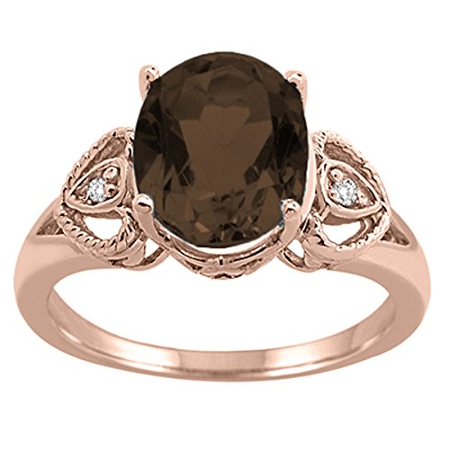 -. Title : Oval Smokey Quartz and Diamond Ring in 10K Rose Gold