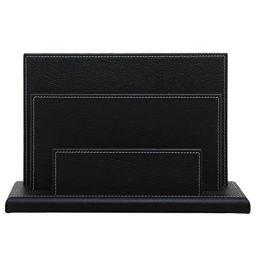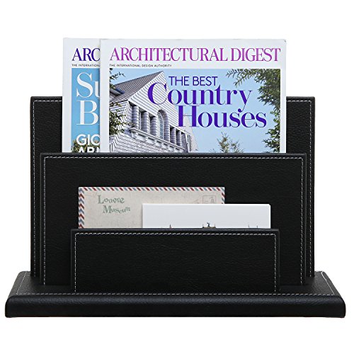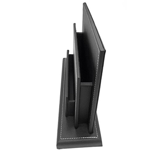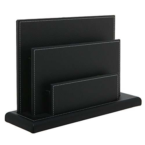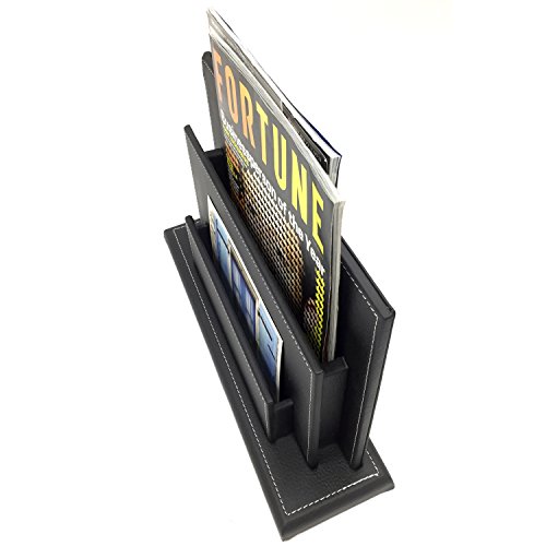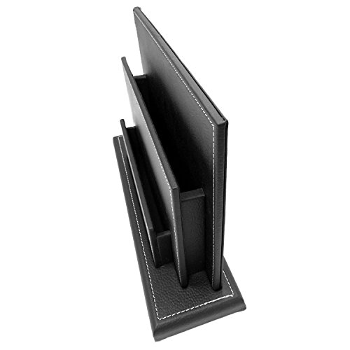 Modern Design Black Leatherette Office Desktop Document Organizer / Magazine Display Stand Rack - MyGift