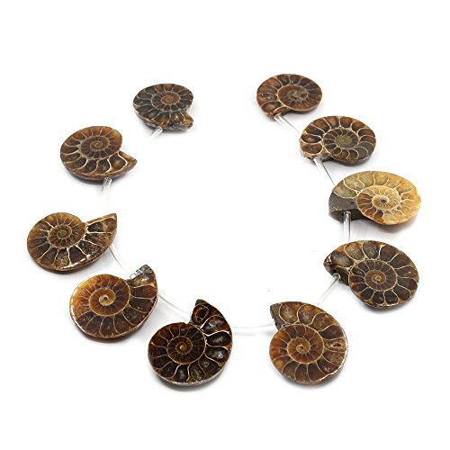Justinstones 10pcs Side Drilled Natural Ammonite Fossil Loose Gemstone Beads