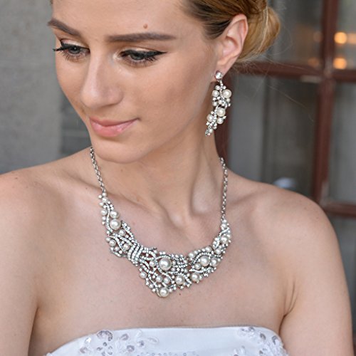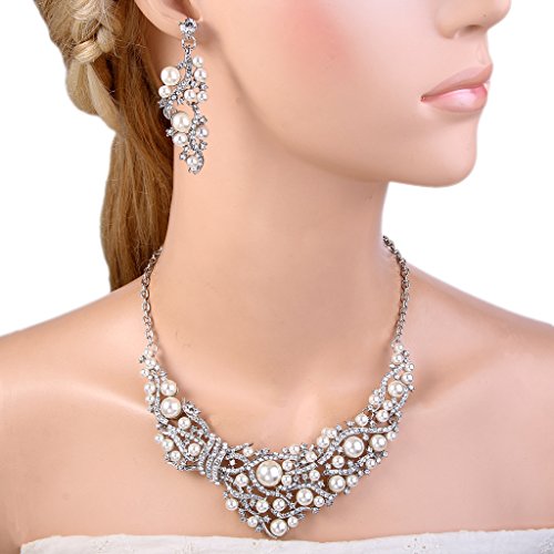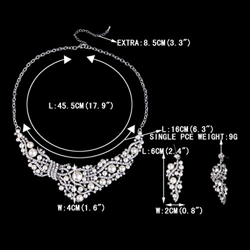 -. Binding : Jewelry -. Brand : EVER FAITH -. Department : womens -. Feature : [!]EVER FAITH® is a US registered trademark and Ever Faith Jewelry is its only owner. / Equally gorgeous with a dinner dress, or spectacular in casual wear. Make a bold statement with this wonderful necklace earrings set. / Length:39.5cm (15.55") - 45.9cm (18.07"). Attachment Size:15cm (5.90") by 4cm (1.57"). Earring Size:5.8cm (2.28") by1.9cm (0.74") / Wrapping: Come with some spare crystals, a gift box and a favor bag. If you need assistance please contact us.. If you need assistance please contact us. -. Label : EVER FAITH -. Manufacturer : EVER FAITH -. ProductGroup : Jewelry -. ProductTypeName : FASHIONOTHER -. Publisher : EVER FAITH -. Studio : EVER FAITH -. Title : EVER FAITH Silver-Tone Crystal Cream Simulated Pearl Vine Necklace Earrings Set Clear