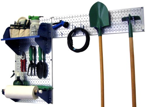 Wall Control 30-GRD-200 GVBU Garden Supplies Storage and Organization Garden Tool Organizer Kit with Metallic Pegboard and Blue Accessories