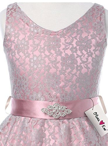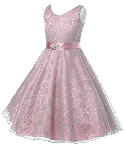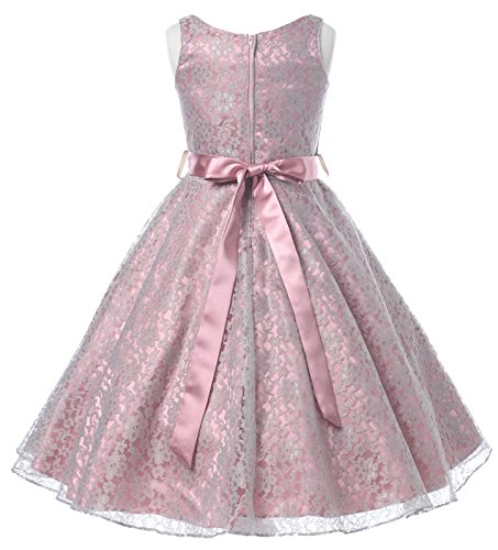 Very elegant dress with beautiful white lace overlayed bodice and double layered tulle skirt. Lovely charmeuse bow sash (attached) over the waistline adds finishing touch.