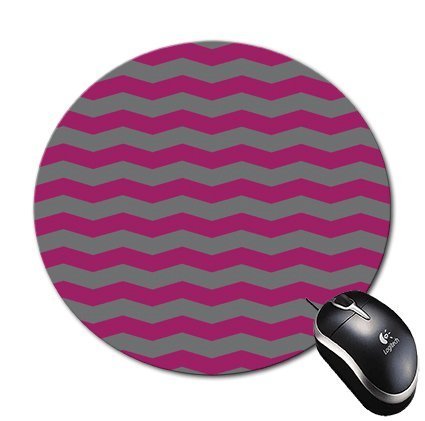 Round Mouse Pad Mousepad Waves Design Raspberry and Grey