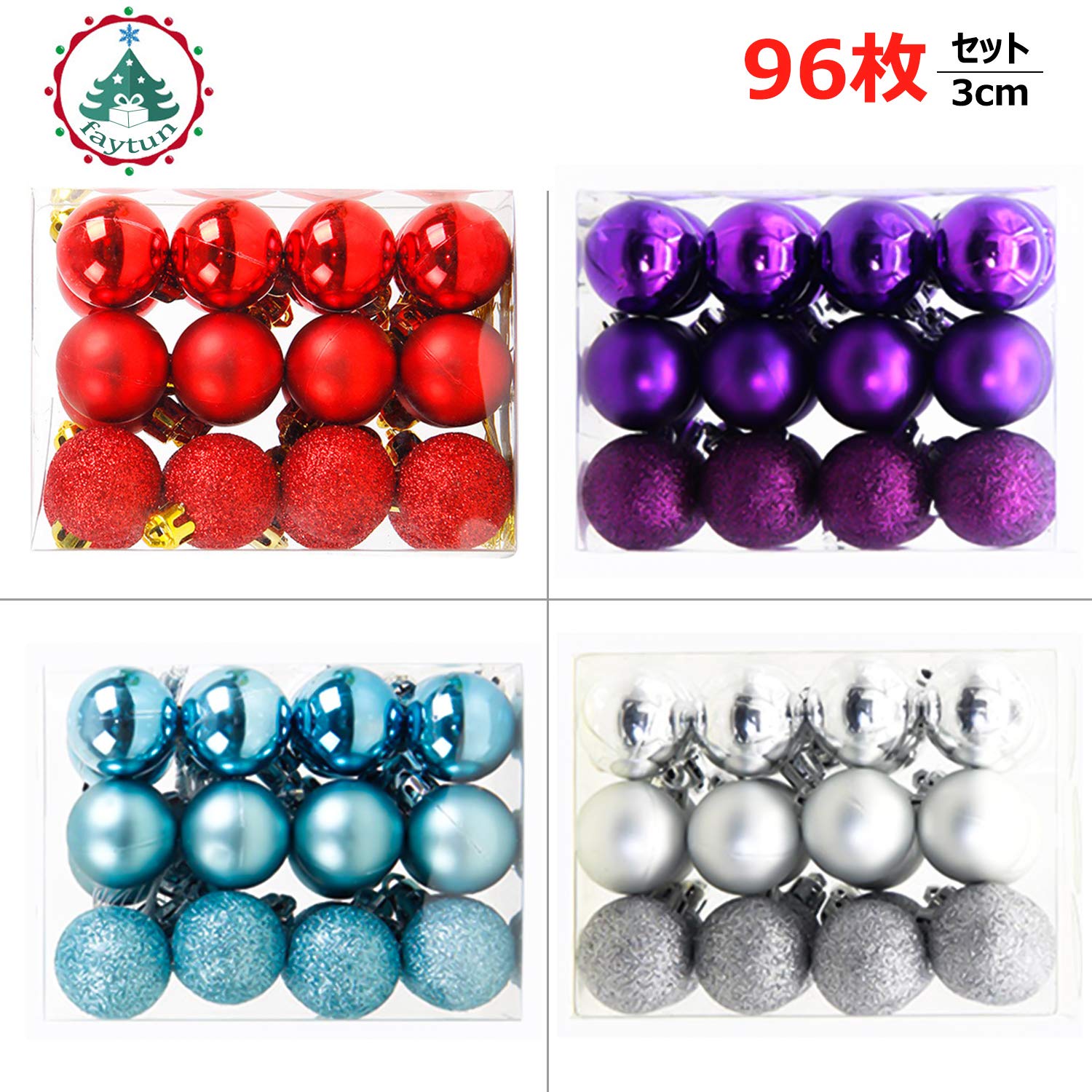【華麗なる大変身】:豪華なボールオーナメントセットがクリスマスツリーにぴったりと飾って、部屋にもキュートと華麗になる大変身!!イルミネーションと一緒に飾ればキラキラと美しく反射して、クリスマスの雰囲気が抜群。 【豪華な96個セット】:赤いボール*24、銀色のボール*24、スカイブルーのボール*24、パープルのボール*24。ボールのサイズ:3CM。 【飾り付けやすい】:ツリーに吊るための糸がついているので、簡単につるすことができます。子供でも使えます。 【当店の豊富なクリスマス飾り】:当店のほかの木製のオーナメントセットと一緒にツリーを飾ると、もっと効果的になります。弊店の飾りがご家庭や店舗の店頭で飾れば、訪れる方の目を奪うことに間違いないです。今年のクリスマスは是非楽しい雰囲気に溢れます。