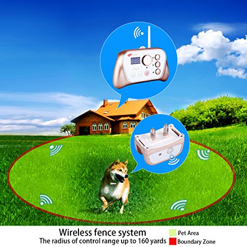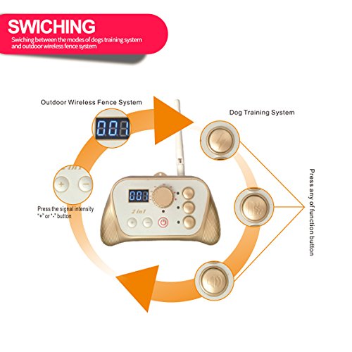 Product Features: Latest No wire , you don't need to dig to bury wire or stack in your yard. Portable, easy to carry the wireless dog fence system out any where. Rechargeable and waterproof receiver collar, longer life than other similar receivers.Transmitter with high capacity built-in battery, can continuously work for 24 hours. 0-100 Levels for signal intensity can be adjusted on the transmitter will prevent your pet from straying from the boundary. Three functions of static shock,vibration,tone can train dogs per your request.