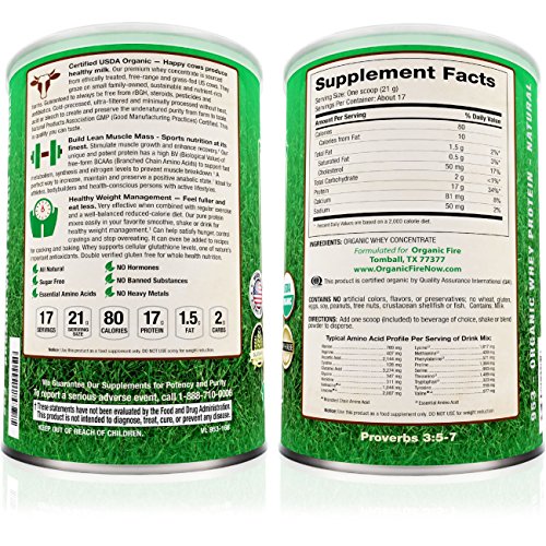 -. Title : OrganicFire Best 100% Pure Organic Whey Protein Powder - Gluten Free NON GMO Grass Fed NO SUGAR - BCAA - Pre Post Workout - Build Lean Muscle Mass for Men - Natural Weight Loss for Women - Guaranteed
