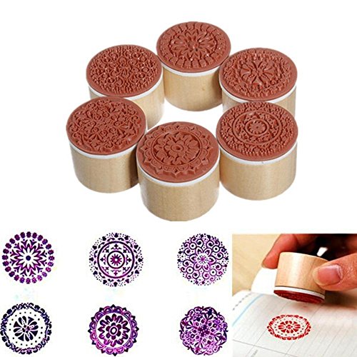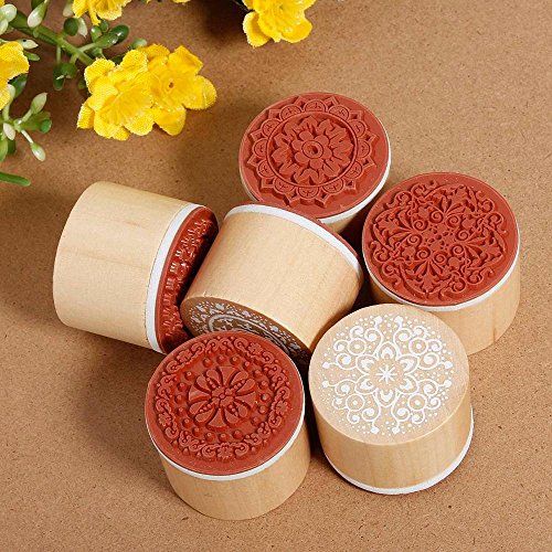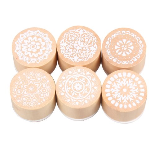 6pcs Floral Pattern Round Wooden Rubber Stamp (do not include ink pad)