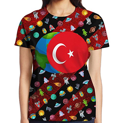 (AAAPlus)/Accessories/Hats/DIRECT FROM USA/AAAPlus Turkey Flag Women's T-Shirt Round Neck Colorful 3D Printed Funny Fashion T Shirt Tee Shirt