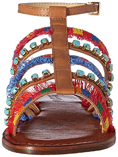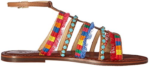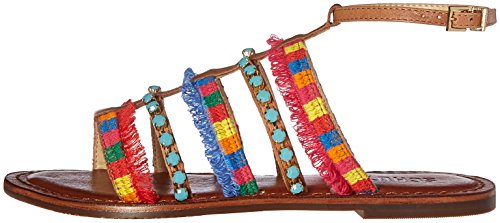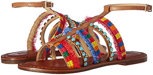 Product DescriptionMulti-colored gladiator sandal with rhinestone and fringe0