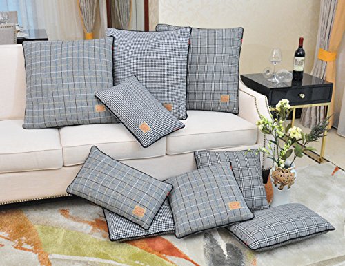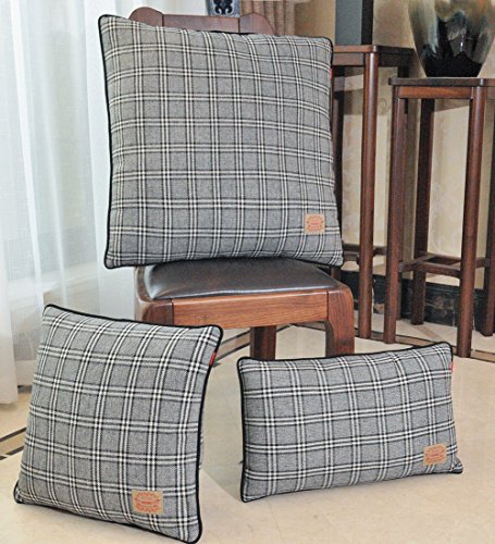 Shinnwa Wool Polyester Double-faced Same Design Tartan Decorative Throw Pillow Case Cushion Covers for Bed, Grey, 22" By 22"