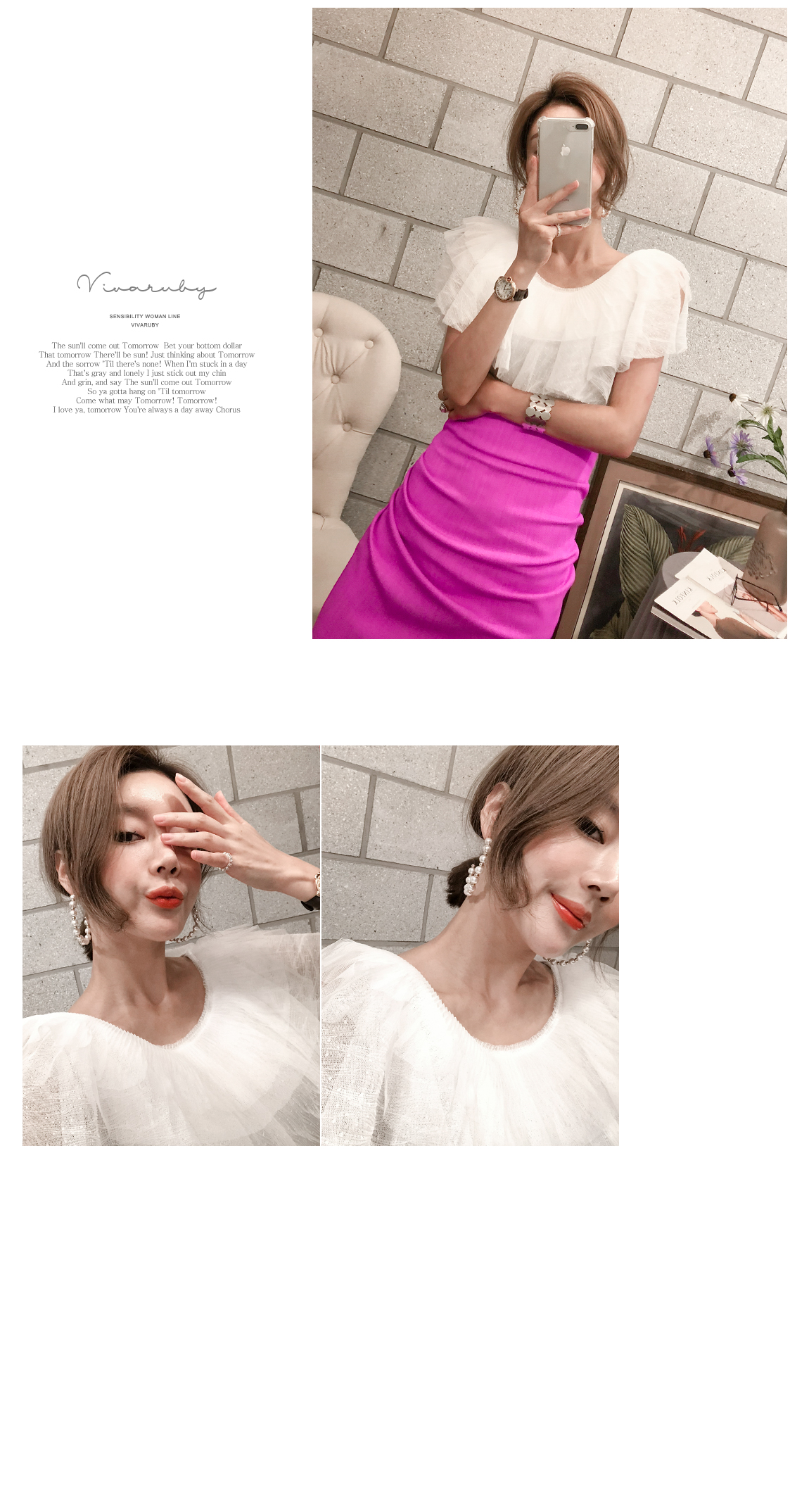 사이드의 셔링 디테일로 페미닌한 포인트를 주었어요