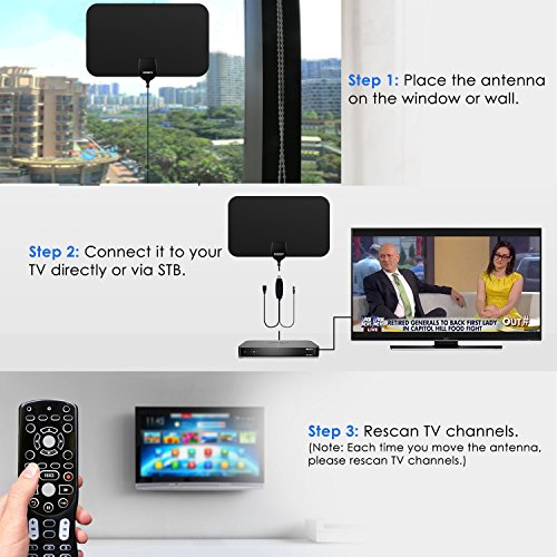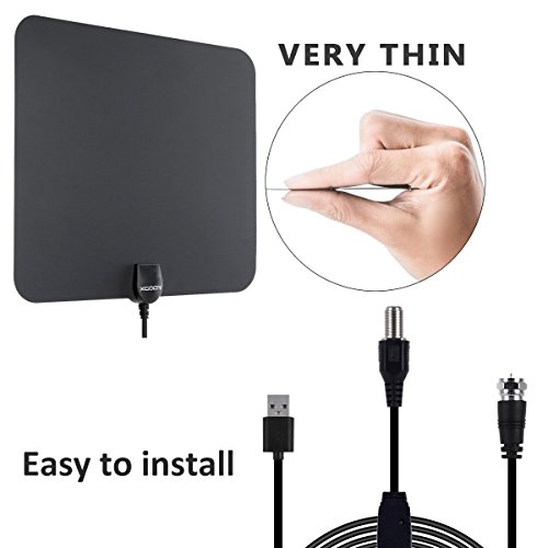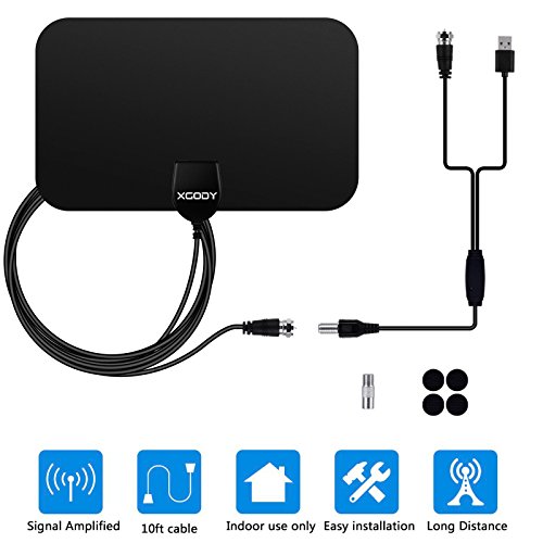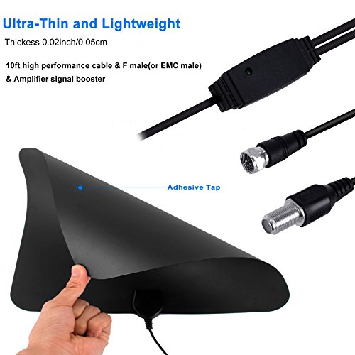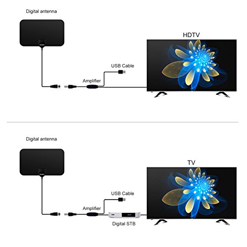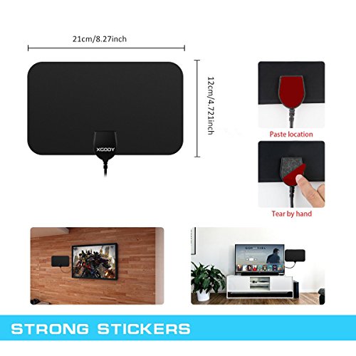 Studio : Shenzhen Xin Sheng Shang Technology Co.,Ltd Publisher : Shenzhen Xin Sheng Shang Technology Co.,Ltd Binding : Wireless Phone Accessory Product Description Specification Max Range: 50 miles / 97 km Frequency : VHF(170-240Mhz) \ UHF(470-862Mhz) VSWR : ≤2.0 : 1 Impedance : 75 Ω LNA Gain : 25dB Connectors : F Male or IEC Male Cable : 1.5C-2V / Black L=3M Polarization : Linear Operation Temperature : -45 ~ 85℃ Storage Temperature : -45 ~ 85℃ Leaf Size :210*120*0.5MM Box Size:320*150*25MM Weight:0.135KG Voltage: 5V Power Supply Connector : USB Signal Booster: F Type Coaxial Female to F Type Coaxial Male Features: Receive up to 1080p HD content from local broadcasting towers and stations for free A maximum signal range of up to 50 miles / 97km allows for great signal distances Amplify the antenna with the signal booster for stronger signals The ultra-thin design allows the antenna to fit into the design of the entertainment area Reach optimal placement areas for the best signal capture with the 10ft / 3m cable Installation 1. It can be installed in 3 simple steps: just connect the coaxial cables and AC adapter, position the antenna, scan for channels on your TV, and enjoy. 2. It makes easy to watch your favorite shows and ever-increasing monthly expenses. It is an economical solution to gain access to free TV signals and free TV viewing within a 50 mile range of signal sender. 3. 12-month Warranty: We offer our HDTV antenna with one year warranty for quality-related issues. Package: 1x HDTV digital antenna 1x Signal amplifier (with coaxial cables USB interface) 2x 3M double-faced adhesive paste 1x User manual please note: without adapter in the package 0