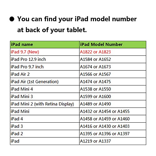 Dingrich New iPad 9.7 trifold case with removable bluetooth keyboard will fit for new iPad 9.7 2017 released ONLY. The model number will be A1822 or A1823 (You can check the model number at back of your iPad before purchase).